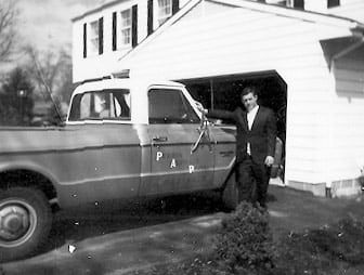 Charlie Perrin in 1966 with the original Perrin Asphalt pickup truck.